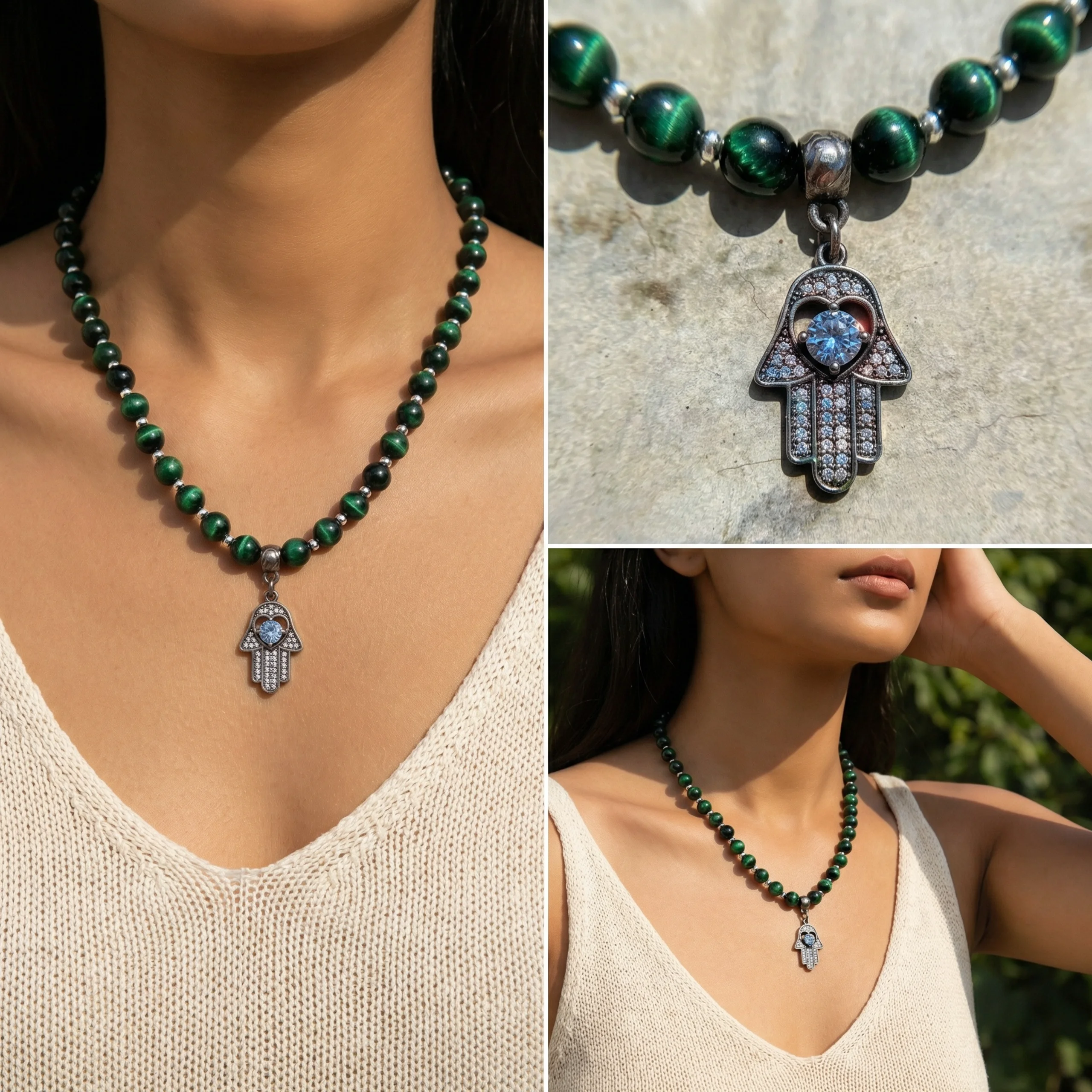 חרוזים ירוקים עם חמסה משובצת.