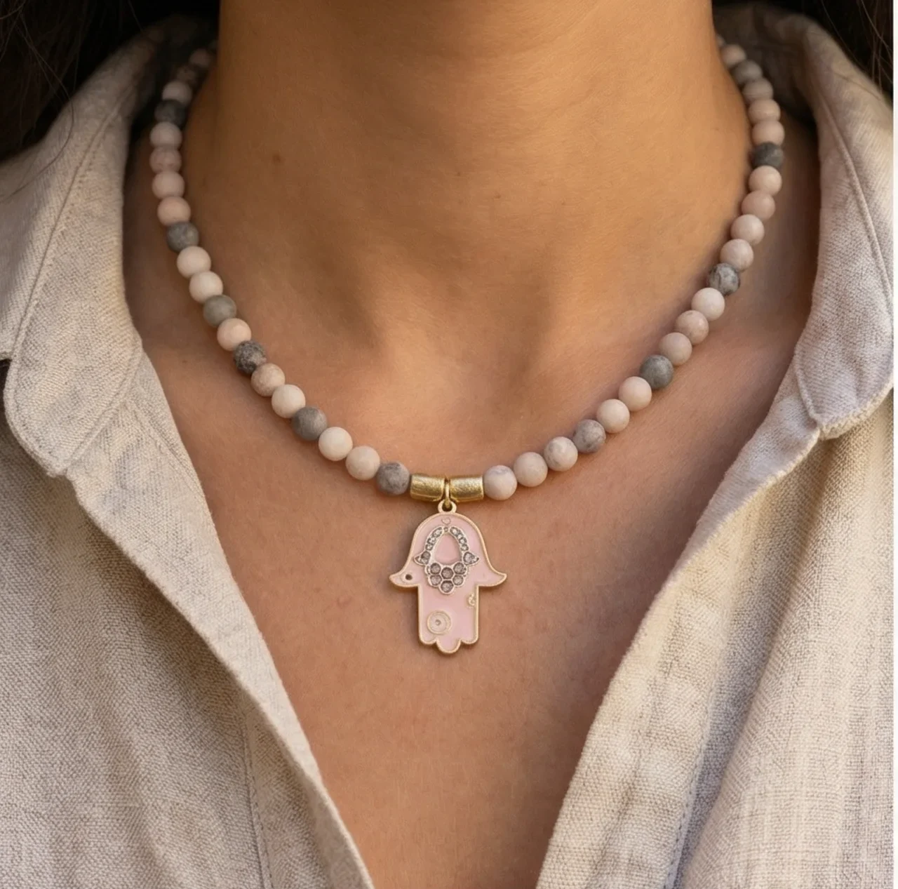 חרוזים בהירים עם חמסה צבעונית.