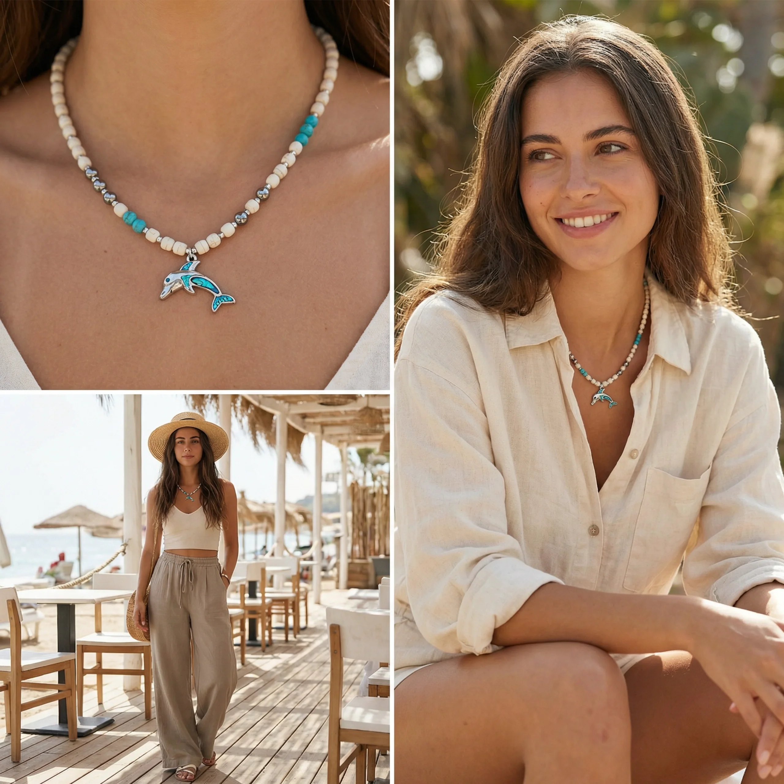 תכשיט ים שמח, המשלב חרוזי בז' וטורקיז, לחובבות החופש והים הפתוח.